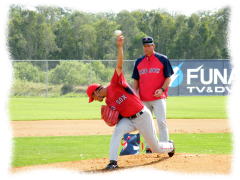 今日は2回目のフリーバッティングに登板、打者はは、オルティーズ、ラミレス、ローウェル、なんと世界一のクリーンアップが相手!!!