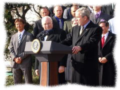 ピッチング練習を終えたあと、チャーター機でワシントンDCへ、空港でセキュリティーチェックを受けたあと、パトカーの先導付きのバスに乗って、大統領閣下の元へ。